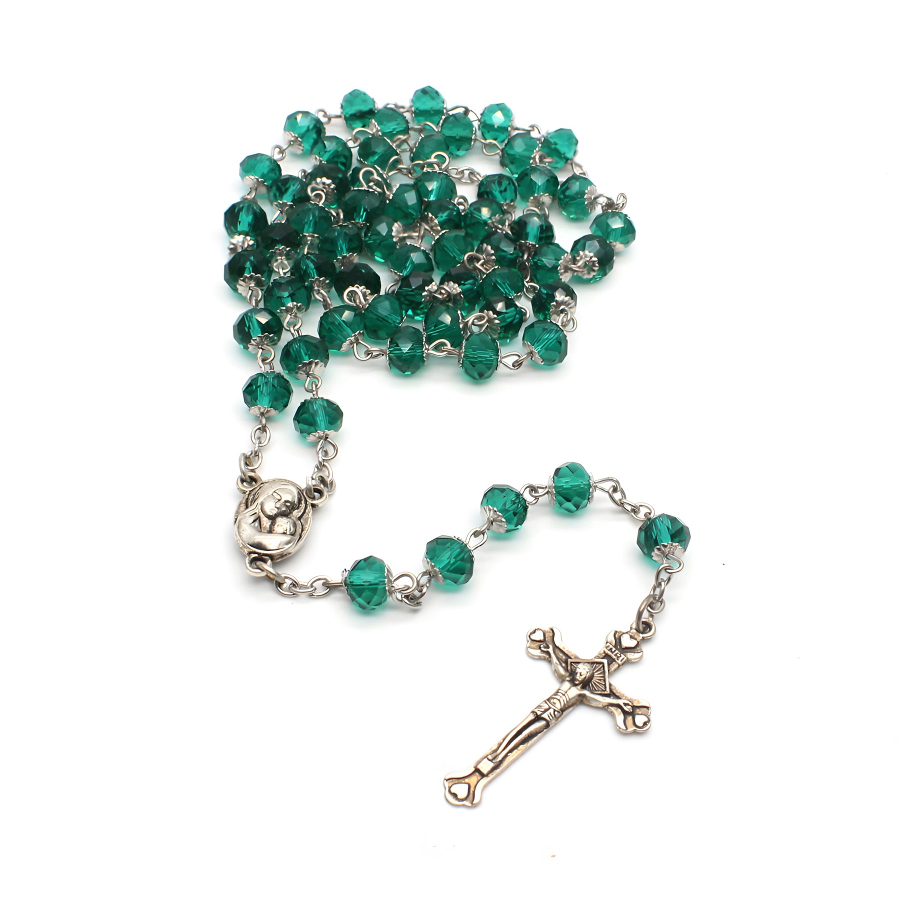 BlessingTree Emerald Crystal Rosary with Silver Crucifix – A Handcrafted Beaded Prayer Necklace