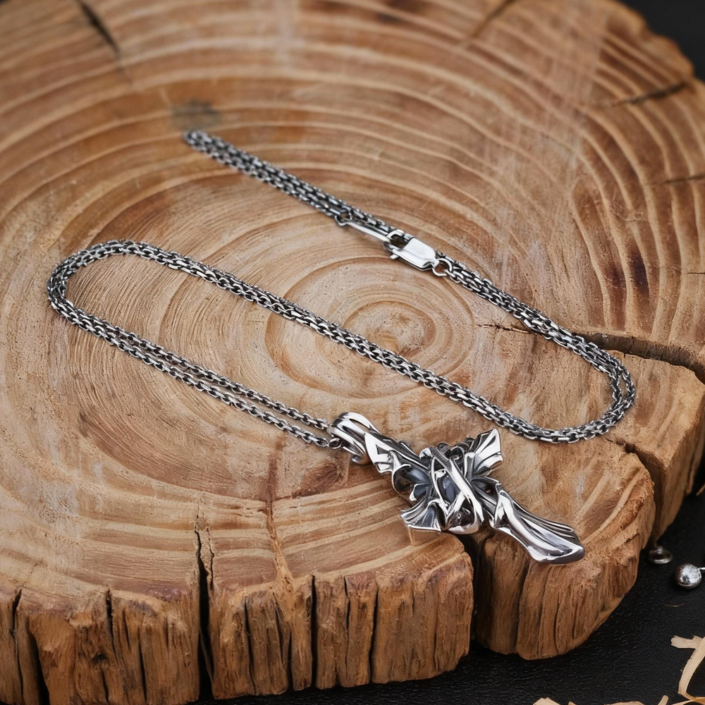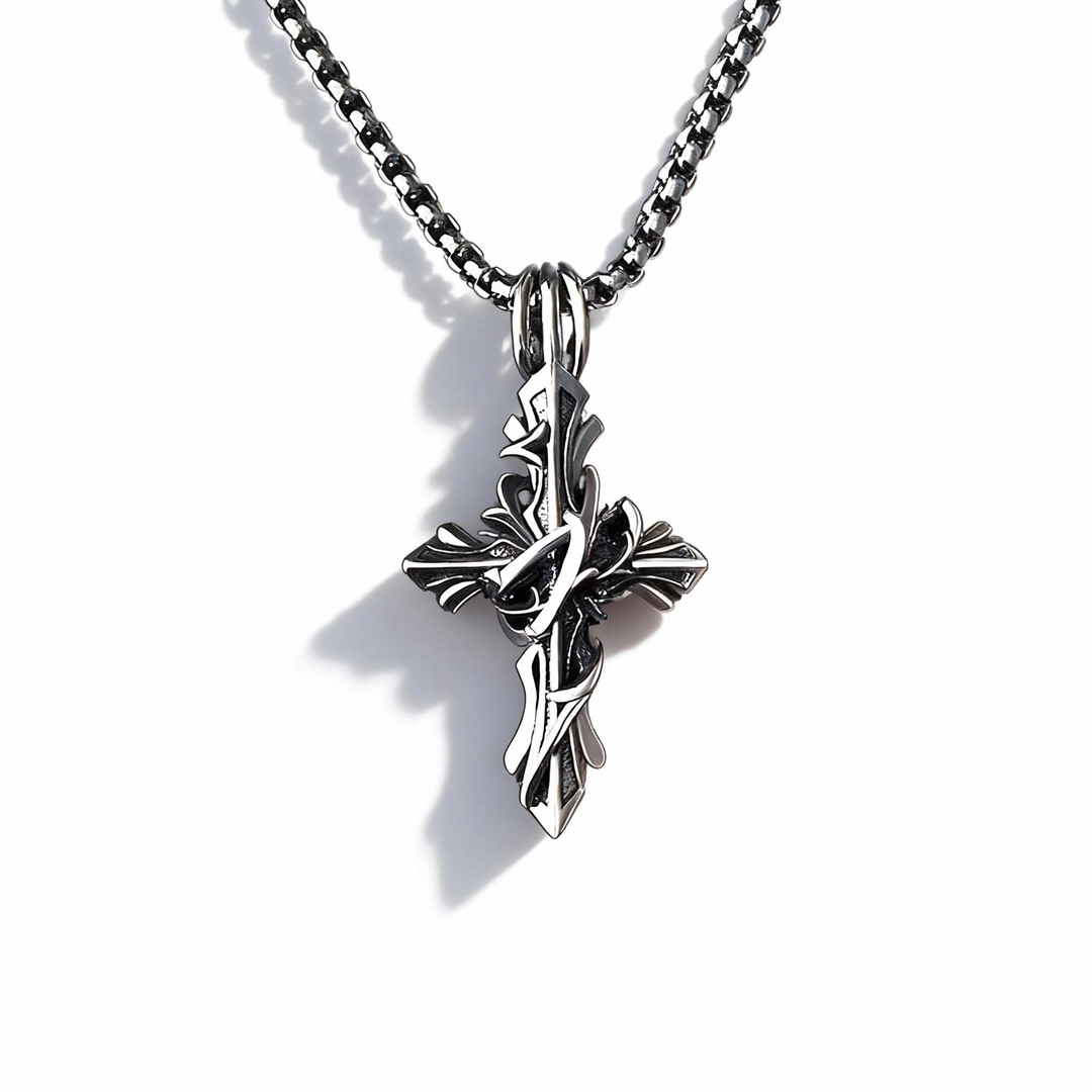 BlessingTree Vintage Thorn Cross Pendant Necklace