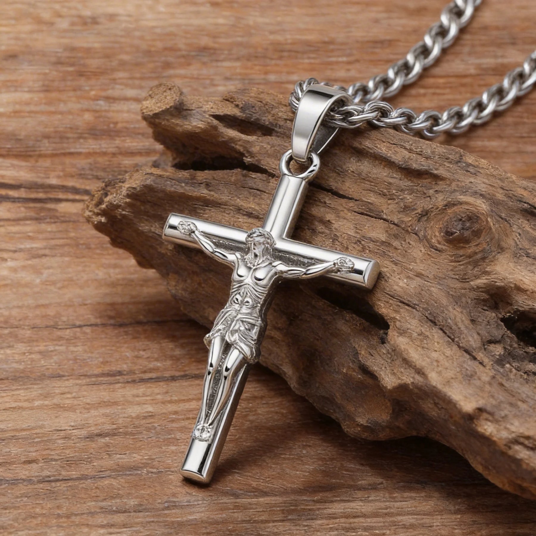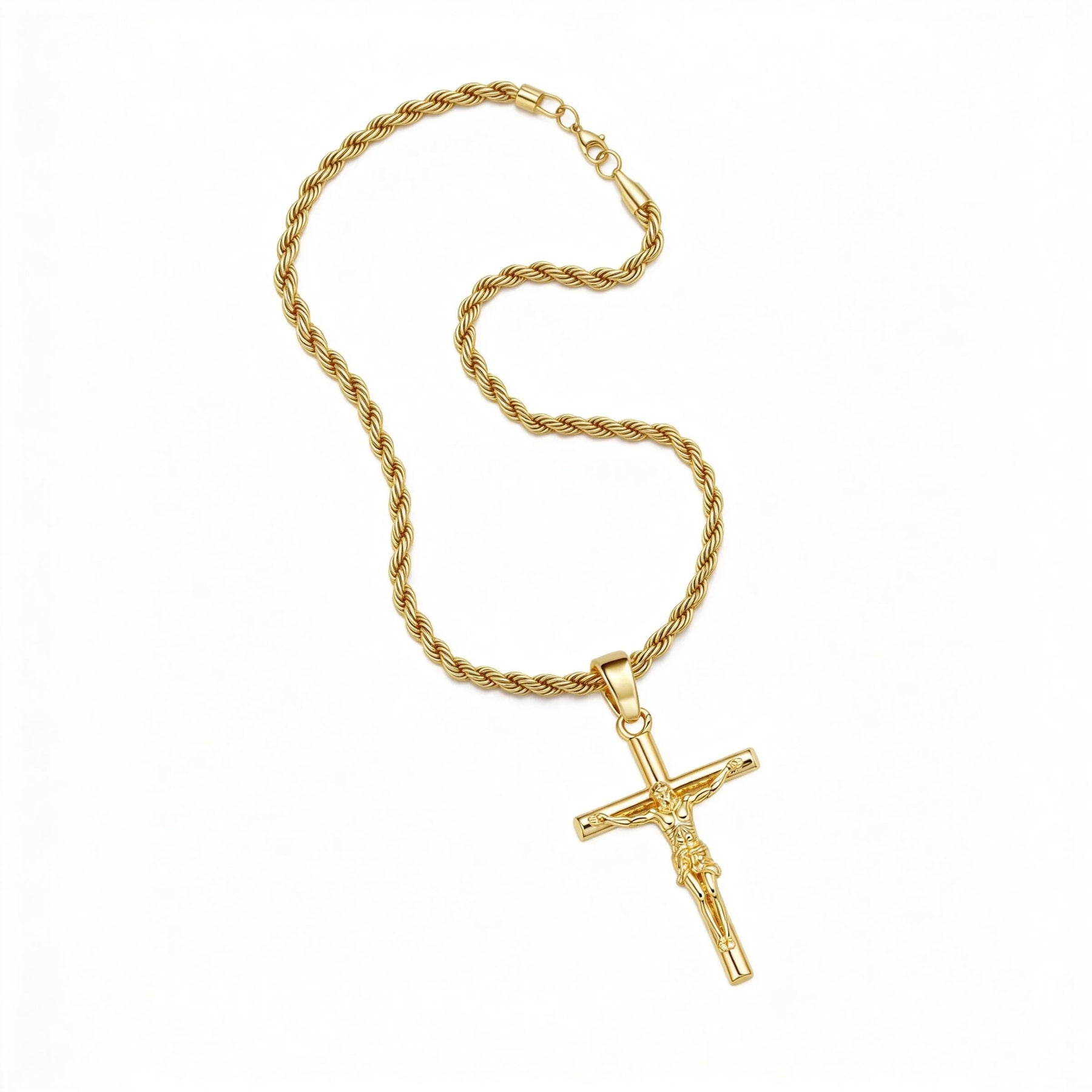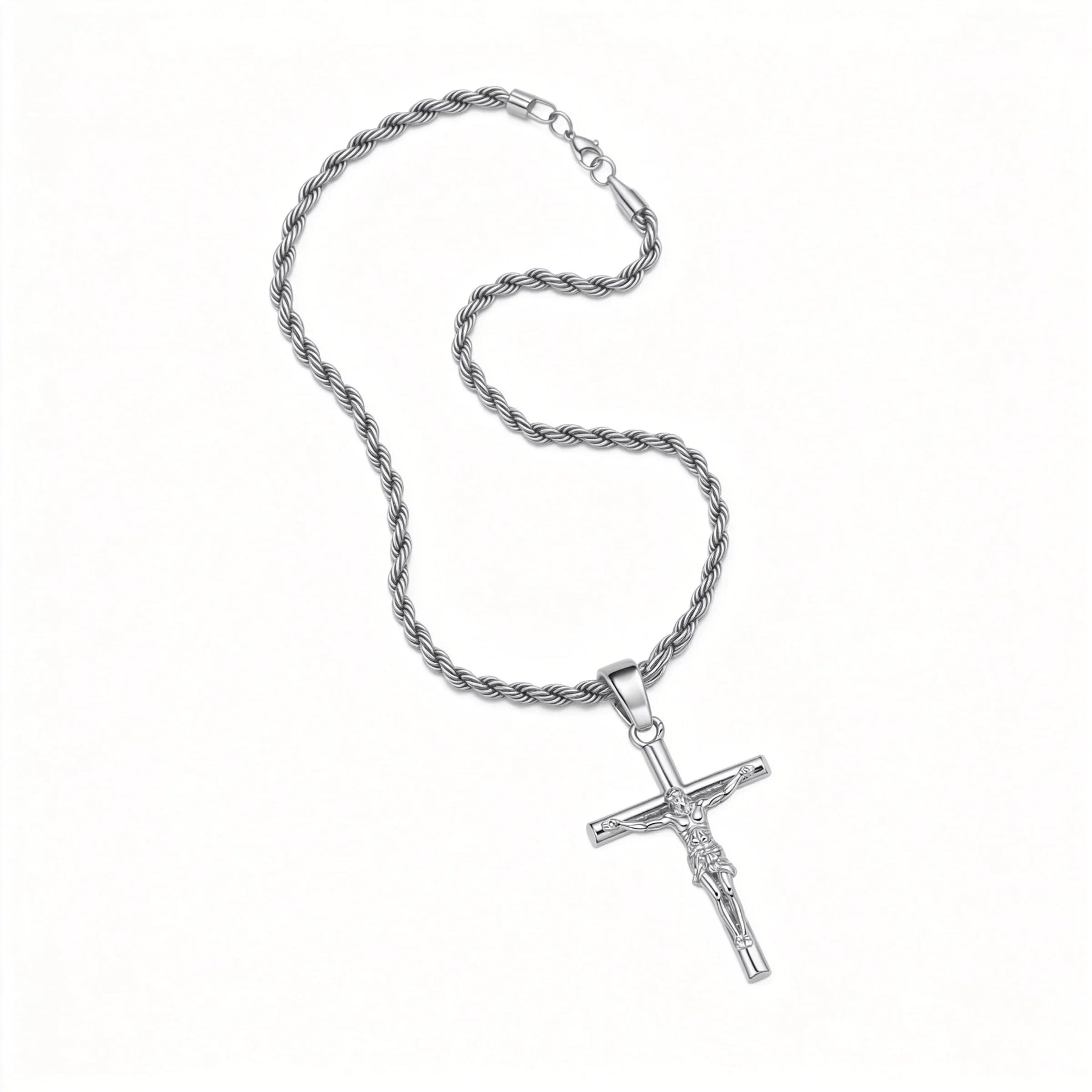 The 56 cm (22 in) rope chain sits comfortably at mid-chest level, making it versatile enough to wear over or under clothing. The twisted rope design adds visual texture and catches light from multiple angles, complementing the polished pendant. A secure lobster clasp ensures the necklace stays in place throughout the day, whether worn during prayer, at church or as part of a daily outfit.