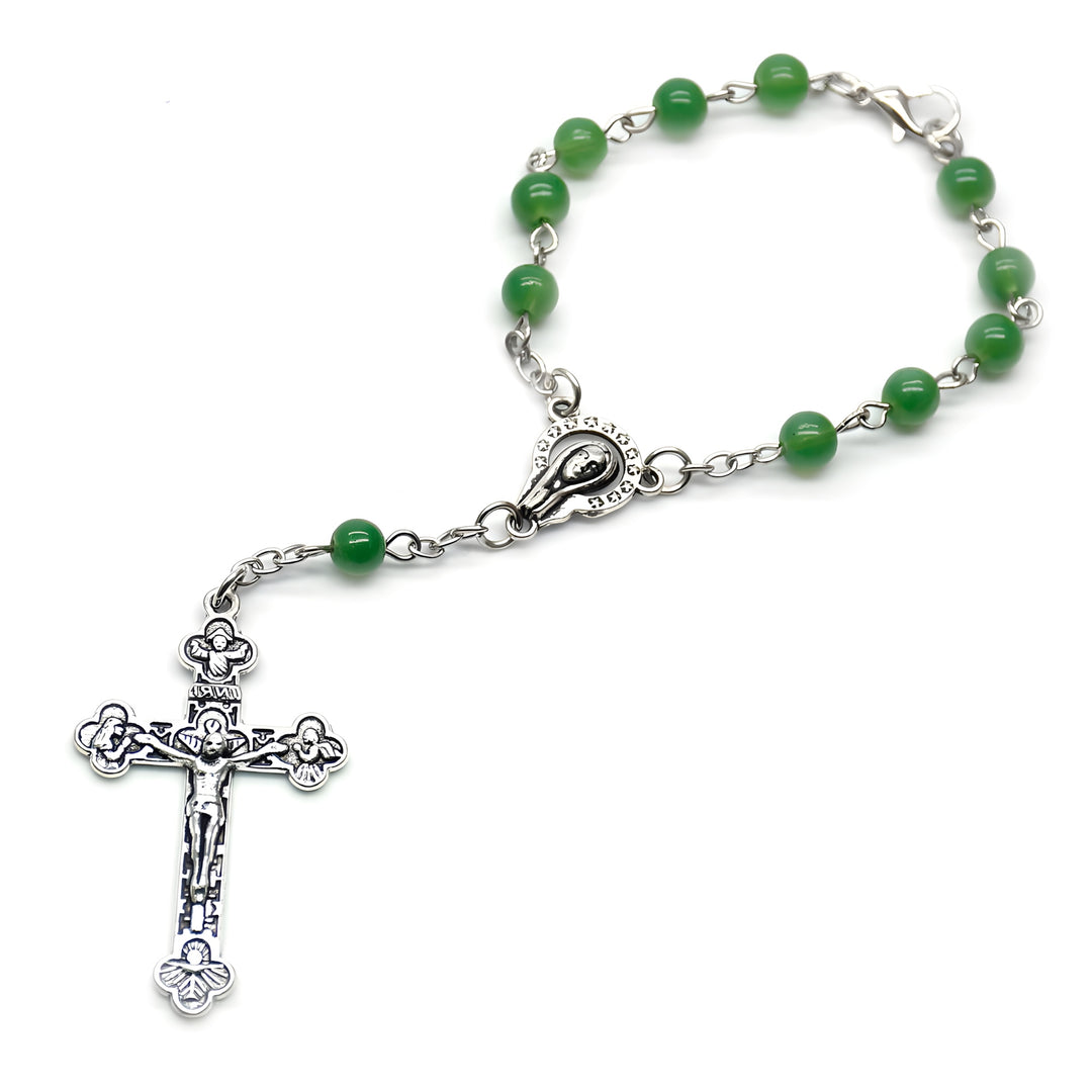 BlessingTree Pocket Rosary Bracelet – 6 mm Green Alloy Beads with Silver Crucifix