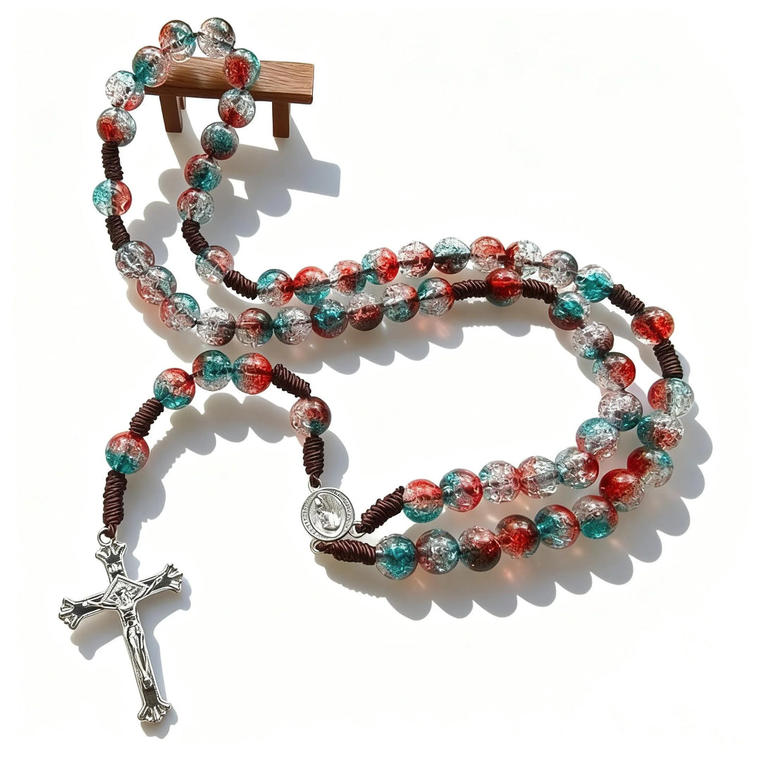 BlessingTree Colorful Crackle Bead Rosary, 10 mm Acrylic Beads with Hand Knotted Cord, Catholic Prayer Rosary